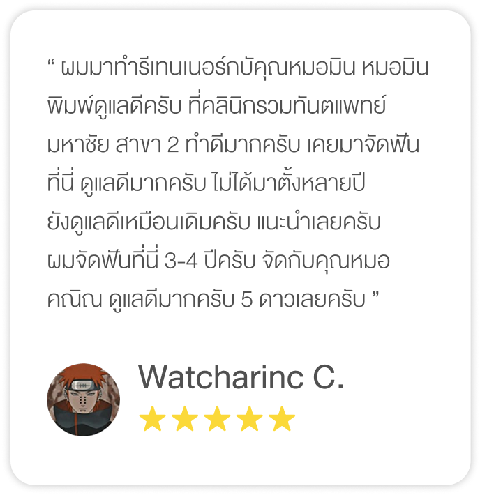 ทุกเรื่องฟัน...ที่รวมทันตแพทย์มหาชัย รักษาฟันกับทันตแพทย์เฉพาะทาง เพื่อผลการรักษาที่ดีที่สุด นัดหมายพบทันตแพทย์ บริการของเรา คลินิกรวมทันตแพทย์มหาชัย ทันตกรรมทั่วไป อุด ขูด ถอน ทันตกรรม ฟอกสีฟัน ทันตกรรมวีเนียร์ และอุดปิดช่องว่าง ศัลยกรรมช่องปาก และแม็กซิโลเฟเชียล ทันตกรรม ฟันปลอมถอดได้ ทันตกรรมรากเทียม ฟันปลอมติดแน่น ทันตกรรม รักษารากฟัน ทันตกรรม โรคเหงือก ทันตกรรม สำหรับเด็ก ทันตกรรมจัดฟัน แบบโลหะ ทันตกรรมจัดฟัน แบบดามอน ทันตกรรมจัดฟัน แบบใส นัดหมายพบทันตแพทย์ คลินิกรวมทันตแพทย์มหาชัย มีทีมทันตแพทย์ผู้เชี่ยวชาญ ครบทุกสาขา นัดหมายพบทันตแพทย์ รวมเคสรีวิว โดยทีมทันตแพทย์เฉพาะทาง เคสจัดฟันโดยการ ถอนฟันกรามน้อย หลังทำ “ รู้สึกมั่นใจ หล่อขึ้น โดนแซวว่าฟันสวยแทน ” จัดฟันร่วมกับการ ผ่าตัดขากรรไกร บนและล่าง หลังทำ “ ใช้ชีวิตได้อย่างมีความ มั่นใจขึ้นมาก ฟันไม่ยื่นและ ยิ้มไม่เห็นเหงือกแล้ว ” ฝังรากเทียมและ ใส่ครอบฟัน หลังทำ “ สามารถเคี้ยวได้ดีขึ้น ใช้ไหมขัดฟันได้ รู้สึกปกติเหมือนฟันจริง ” นัดหมายพบทันตแพทย์ ได้รับความไว้วางใจ จากคนไข้อีกหลายท่าน รวมรีวิวจากคนไข้จริง นัดหมายพบทันตแพทย์ สาขา คลินิกรวมทันตแพทย์มหาชัย ตรงข้ามสถานีดับเพลิง คลินิกรวมทันตแพทย์ มหาชัย 086-3065264,034-425866 @ruamthantapat ก่อนถึง AIS อยู่ฝั่งรพ.สมุทรสาคร คลินิกรวมทันตแพทย์ มหาชัย สาขา2 094-7340349,034-446739 @ruamthantapat ลงทะเบียน รับสิทธิพิเศษก่อนใคร Contact Form Homeชื่อ - นามสกุลเบอร์ติดต่อLine IDส่งข้อมูล คลินิกรวมทันตแพทย์ มหาชัยบริการงานด้านทันตกรรม ด้วยทีมทันตแพทย์ผู้เชี่ยวชาญเฉพาะทางกว่า 30 ท่าน มุ่งเน้นการดูแลรอยยิ้มของทุกคนให้สวยงามพร้อมกับดูแลสุขภาพฟันให้แข็งแรงโดยทีมทันตแพทย์เฉพาะทาง หน้าหลัก รากฟันเทียม จัดฟันใส จัดฟันเหล็ก Copyright © 2025 คลินิกรวมทันตแพทย์ มหาชัย
